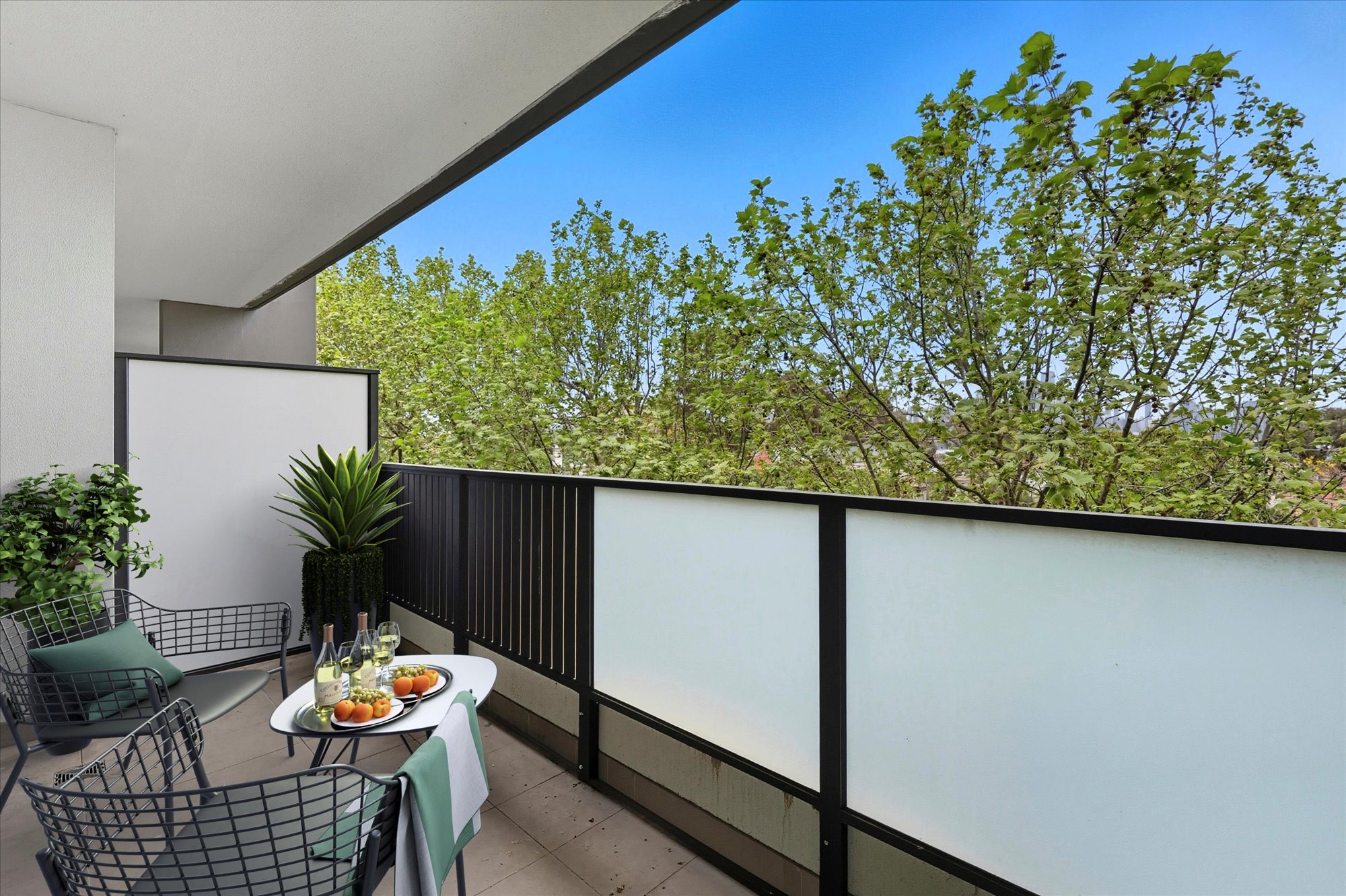 - Sunlit open-plan living framed by full-height glass and balcony outlook