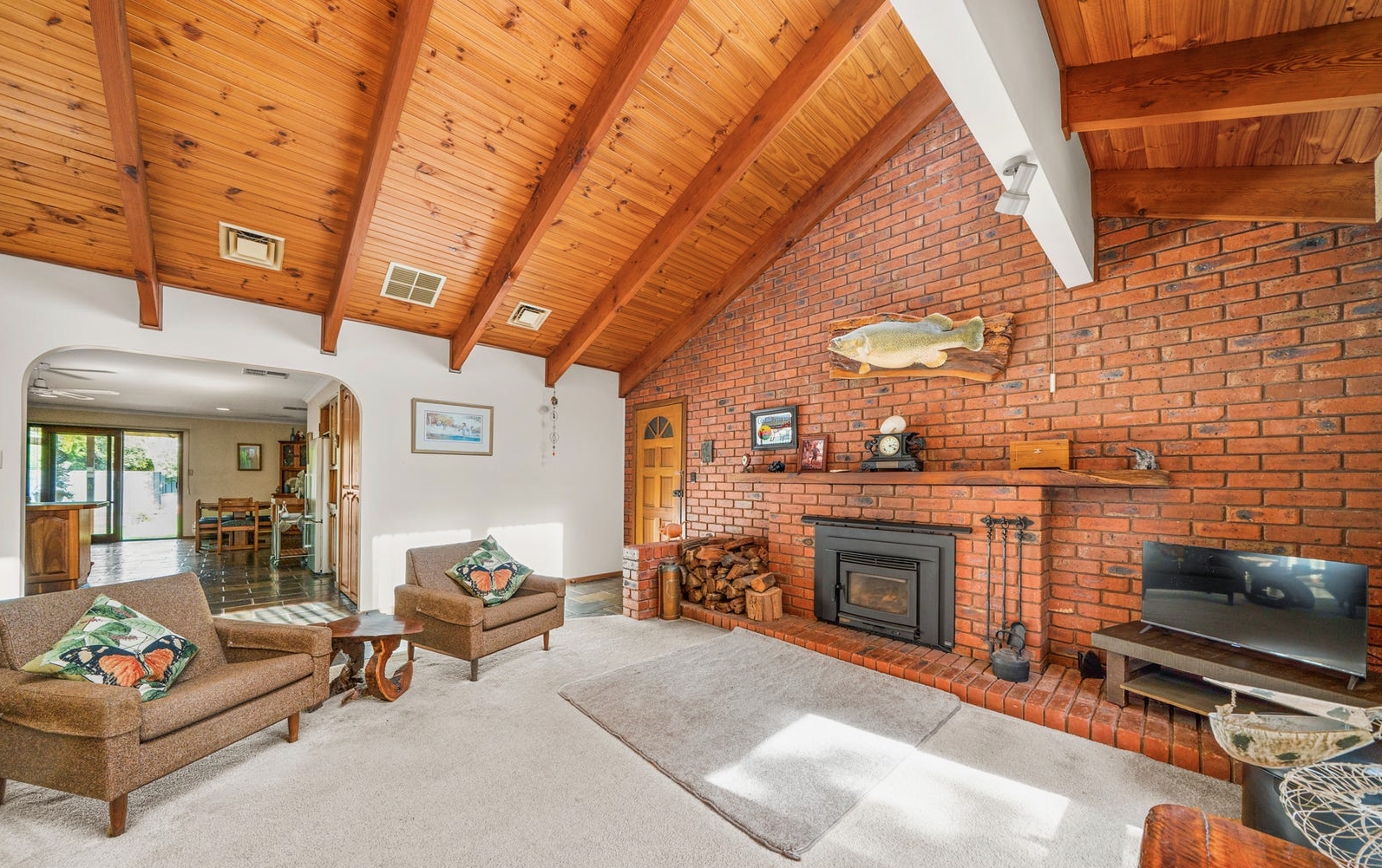 • Front formal lounge beneath a stunning cathedral ceiling, complete with fireplace